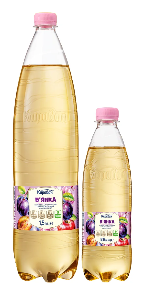 Напій безалкогольний сильногазований соковмісний 1.5л, 0.5л.
